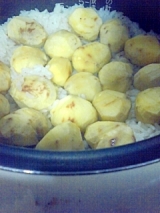 娘達と私、栗大好きです 今年は豊作で安く手に入るから、幸せ 今晩の夕食に、 簡単栗ごはん を作りました ショップcorcorファンサイト参加