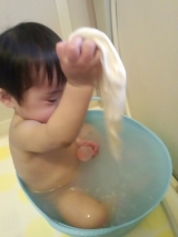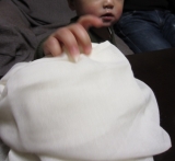 竹から布が出来るんだって!! ってビックリで、手元に届いたら柔らかさに更にビックリお風呂用ガーゼタオルと一緒に、繊維見本が付いてたんだけどこれが柔らかい竹? これ竹? と旦那ちゃんとビックリ気持ち良くてコチョコチョしてたら小虎もやるんだとか気持ち良いのかヨダレが出てきた(^^;ひたすらコチョコチョあ、『たけふ』って言うのね織った布も手触りはとっても柔らか優しい色合いなんで、出産祝いにも良さそうでも個人的にはもうちょっと柄があると子供の気を引けていいかな何も考えずにお風呂に入れられる期間は限られているわけだし、ママ達はできるだけ子供がおとなしくお風呂に入ってくれるのを望む訳だしお魚の絵とか、水辺に住む動物とかだと湯船で遊ぶのにもいいなぁ広げたら小虎が早速持って逃走(^^;お風呂でも使ったけど、レンズが曇ってしもた!!って訳でお風呂レポートは後日プロアクティブのファンサイトファンサイト参加中