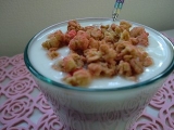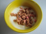 シリアルは固めと柔らかめどちらが好きですか!?藤花は断然固めなので市販のシリアルも牛乳に少し浸ってるとふにゃふにゃになるのがイヤで少しづつ足しながら食べるほどです^^今回お試しした商品はこちら↓健康食品の原料屋有機JASシリアル ストロベリーミックス甘酸っぱいイチゴとほんのり甘いハチミツ入り有機オート麦有機小麦パフ有機ライスパフと絶妙なハーモニー♪見た目もピンクで可愛い最近電気代の事とかで気分が落ちてたのでせっかくだから可愛く食べてみました♪♪何とコラボさせているかと言うと…紫色のモノはダイエットゼリーのブルーベリー味そしてプレーンヨーグルトで、ストロベリーミックス藤花好みの色のオヤツが出来上がり見た目はとっても可愛くて小ぶりですが…これを食べきる頃にはお腹いっぱいでしたシリアルが期待以上の噛みごたえ♪♪それにヨーグルトに潜っていても変わらない固さ!!でね有機イチゴも入っているので噛んでいるとジュワーっとイチゴを感じる♪とってもジューシーなんですイチゴと蜂蜜のほのかな甘さでプレーンヨーグルトも楽々食べられちゃいます♪(藤花はヨーグルト好きですがプレーンには砂糖を入れちゃうので今回は入れずに食べる事が出来ました、カロリーダウン♪)食物繊維もたっぷりなので朝食が一番おススメでしょうか^^時間が無い時もホントに楽ですこちらは朝食でヨーグルトに入れて食べた時牛乳にも入れてみました牛乳が一番美味しかったちなみに牛乳でも全然ふにゃふにゃしないで優秀♪しかもイチゴミルクになって感激♪♪息子君はそのまま食べて喜んでました^^ストロベリーミックスの他に…甘み無しのナッツとフレークだけのニューファイバーミューズリー甘み無しにナッツフルーツフレークのニューバランスミューズリーアップルパイの様な味のアップルシナモンがラインナップされてます気になる方はこちらから↑食物繊維が豊富なのは本当に実感しましたいつも月1のモノが来ると便秘になってしまうのですが今回、最中でも便秘にならずダイエット中の「どうしてもオヤツ食べたい!!!」そんな時にも手軽なのでおススメです天然原料100%なので子どもと一緒に食べられるのがとても便利でした♪(最近大人の食べ物を何でも味見するお年頃なので^^;)美味しく頂きました♪健康食品の原料屋さんありがとうございました♪♪「健康食品の原料屋」ファンサイトファンサイト応援中 続きを見る ['close']