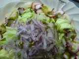 新婚の頃は…料理雑誌を買ってマネできそうなメニューを切り抜いて♪なんて初々しい事もしていましたが…息子君が産まれてからは…「いかに簡単に作れるか」と言う事に重点を置いてしまい献立がマンネリしております…そんな藤花家にやってきてくれたバジルソース♪晩餐館焼き肉のたれでおなじみの日本食研さんです実は…カルパッチョなんてオシャレなメニューを食卓に登場させた事が無かったので初めての試み^^カルパッチョと言えば…真っ先に思い浮かんだのが「タコ」作り方には「お好きな魚介類で♪」となっていたのでサーモンと迷いましたがパパの好きな貝柱のお刺身♪野菜は家にあったものでテキトーに簡単に出来ちゃったタコをテキトーに切って貝柱はそのまま紫玉ねぎを「さらし玉ねぎ」にしただけです^^紫玉ねぎとバジルソースのコントラストに惚れた(笑)こちらのソースは使いやすいように個包装、1つで34人前のカルパッチョが完成しますこの日は調度お昼にボリュームのある物を食べた日だったのでカルパッチョをメインにボリュームを出して作ってみました^^他にも…白身魚のムニエルに添えてオイルが先に出て来て次にバジルが出てくるので器用な方はシェフが作るような飾り付けソースもマネ出来ちゃいます♪♪藤花は…^^;見てお分かりのように…繊細に出す事が出来ず(笑)ニンニクも入っているソースなのでチキンのグリルにも合う味ですそうそう息子君と手抜きお昼ご飯を食べた日↓冷凍ピザが…お店で食べるピッツァもどきにwwwちょっと献立が増えて食卓が豊かになりました♪個包装なので保管が利くし来客時にも重宝してくれそうカルパッチョ バジルソース日本食研さんありがとうございました美味しく戴きました♪日本食研のファンサイトファンサイト応援中 続きを見る ['close']
