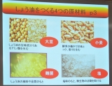 " rel="nofollow">(社)日本フードアナリスト協会 主催 ヤマサ醤油株式会社(http//wwwyamasacom/ )協賛の 「お醤油文化大使任命セミナー」に参加してきました まずは お醤油の歴史や文化、 製造方法、裏話、鮮度についてのお勉強です 醤油のルーツは、「醤(ひしお)」と呼ばれる古代の発酵調味料だそうです ※「醤(ひしお)」とは 魚や肉、野菜、穀物など発酵させた塩辛状の調味料のこと 奈良時代に「醤」を作る技術が日本に定着し、 和製醤がつくられるようになりました そして、鎌倉時代 宋に渡って径山寺で仏教を学んだ禅僧の覚心が なめ味噌の製法を伝え、 紀州で径山寺(金山寺)味噌を起こします そのみその仕込み桶の底に分離してたまった液体が 溜りしょう油の発祥、 ひいては現在のしょう油の発症といわれています 江戸時代に入ると 気候的、地理的な好条件が重なり 銚子でのしょう油つくりが本格化し、発展していきます そして、 庶民の調味料として「しょう油」が定着するのです さて、 次はしょう油の原材料についてです♪ しょう油の原材料は、この4つ 大豆 主成分であるたんぱく質が、麹菌のたんぱく質分解酵素によって分解されて しょう油のうまみ成分であるアミノ酸を生みます 小麦 でんぷんを多く含み、それが麹菌の酵素の働きでブドウ糖に変わり、 甘みとコクを生み出します 塩 塩味の素になりますまた、もろみを雑菌による腐敗から守り、 耐塩性、好塩性の麹菌乳酸菌酵母など 有用な微生物の活動を助ける役割を果たします 麹 さまざまな酵素を作り出し、原料である大豆たんぱく質をペプチドやアミノ酸に、 小麦に由来するでんぷんをブドウ糖に分解します しょう油の風味や品質のもとになります 製造のポイントは 「一麹、二櫂、三火入れ」 いちきく、にかい、さんひいれ、と読みます お醤油作りに関わる方たちでこの言葉を知らない人はいないそう 一麹大豆と小麦に麹菌を加えて「しょう油麹」をつくること 二櫂それに塩水を入れて発酵させる過程で適正に撹拌して空気を入れること 三火入れ圧搾後の生しょう油に火を入れて、色味香りを整えること この点が製造工程の中で最も重要なポイントになるんだそうです 「麹の働き」と「人間の経験と工夫」 この自然と人間の共同作業によって おいしいしょう油が出来上がるんですね 次回は、お醤油の効果と品質についてレポしたいと思います♪ 続きを見る ['close']