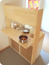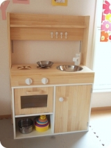 娘の一歳のお誕生日プレゼントに ままごとキッチンを 手作りしました 最初は トイザらスの木製キッチンや IKEAのキッチン と迷っていましたが 夫が手作りにやる気を見せてくれたので 手作りキッチンに挑戦! 夫も私もDIY初心者ですが なんとか形になりました(^^) カラーボックスをベースに 木材はパイン集成材を使用 蛇口(…に見立てたもの)と コンロのつまみは 回るようになっています 100均の調味料入れと おもちゃの標識を活用 つまみには小さな強力磁石を埋めて 回すとカチカチとした手応えを 感じるようにしてみました 反対側は折りたたみ式の 小さなカウンターを 強度がちょっと心配なので しばらくは封印ですが 少し大きくなったら カフェごっこなんか出来たらいいなぁと 思って作りました(^^) カラーボックスの裏側も 今はそのままなので 黒板とかにしてみたいなー プレゼントで貰った IKEAのフライパンやお鍋もかわいい! …でも食材がまだないので プラステンのこまと プラスチックのリングが 今は材料です(^^;; 出来るだけ手頃に作ろう! と思っていましたが 木材が思っていたよりも 高くなってしまい 制作費はネジや工具なども含めて 8000円弱 100均を利用した部分は コンロのつまみ(標識のおもちゃ) 水道(調味料入れ) シンク(浅型ボウル) オーブンの窓(透明な下敷き) 五徳(コルクコースター) 白い扉のつまみ カトラリー型フック 作る労力とかを考えたら きっと買った方が安上がりだけど 大満足の仕上がりです(≧∇≦) たくさん遊んでくれるといいなぁ… 【メイトー60周年記念】日本橋スイーツ和栗のプリンと栗入りあんモニター募集 ピリ夏!キャンペーン商品(期間限定)のアンケート 続きを見る ['close']