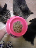 届いたのでさっそくみんなにあげてみましたー 市販のエサしか食べたことないこの子達 どういう反応するかな?o(^ω^)o おーっとお皿を床に置く前から興味津々 位置についてよーいどんっっ 一斉に走り出したー! 食にあまり興味が無いショコラまで走り出したー! おーっとショコラが食いしん坊チップの皿まで横取りして食べ出したー! 結局ものの1分くらいで全部キレイになくなりました(°□°;) きっとすごく美味しかったんだね なくなってからもしつこく催促されました(笑) このエサはコチラのお店のでしたドッグキャットフードの無添加安心本舗ファンサイト応援中 みんなすごく満足そうですよかったにゃん 続きを見る ['close']