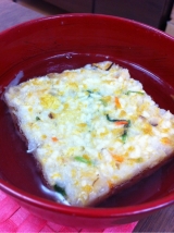 モニプラさんからいただきました 大江の郷「鶏ぞうすい」 こちらは大江の郷(おおえのさと)自然牧場という 鳥取の牧場が、「美味」「安心」「安全」にこだわり 新鮮、無添加、国産の素材、天然だしなどをつかった フリーズドライ商品のひとつ、「鶏ぞうすい」 早速頂きました 作り方は簡単、開けてお椀に入れて、お湯180ミリリットルを注ぐだけ! 30秒待つと こんないろいろな具が入った、美味しそうなぞうすいの完成!! お味が、さらにびっくり おだしがすっごいおいしくて、料亭もびっくりのお味 鶏のだしがふんだんに出ていて、名前をみなくても 「これ、鶏ぞうすいでしょ」ってわかるほどです!! しかも、みてください、この具の多さ!!フリーズドライとは思えない! 丁寧にほぐした鶏ささみをはじめ、新鮮な天美卵、 地元のこだわり農家さんの作ったえのき、白ネギ、 そのほかに三つ葉や人参をたっぷり使用しているそうです ほんとに簡単に、おうちでほっこりできましたよ、どうもありがとうございました♪ ほかに「カニぞうすい」も出しているみたいで、 鶏でこんなおいしいならこっちも いつか、こちらも試してみたいです 大江ノ郷自然牧場ファンサイト参加中 続きを見る