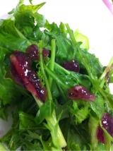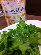 ちょい足しジュレの2種、梅味、そして、生姜味ををいただきました ちょい足しジュレとは ジュレタイプの“TSUKEMONO”調味料 株式会社新進こと、しんしんがイチオシする新製品です しょうがなら、豆腐や豚肉、 梅なら、きゅうりやおにぎり、 いろんなものと合わせられるので、到着を心待ちにしていました! でも、まずは基本にかえって 両方の味を、わたしはサラダでいただいてみました 梅はこんなにきれい!! 味も梅のほうが、このわさび菜にはあっていました ちなみに、わさび菜の苦みを消すためと 味のまとまりを出すため、全体に醤油も少しかけています 醤油との相性も両方ともいいし、とっても新感覚で 味はもちろん、見た目も楽しめる逸品だなと思いました これからいろんなものに使ってみたいと思います 楽しみ 福神漬ならお漬物のしんしんファンサイト参加中 続きを見る ['close']