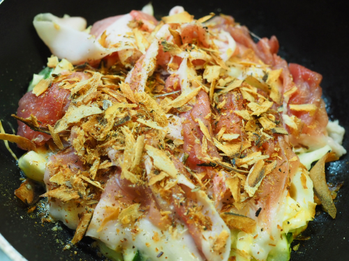 1,2枚目のお好み焼きの中には粉と卵の他に、キャベツ、人参、ほうれん草、チンゲン菜、なばな、豚肉、えりんぎ、だし取り用の鰹、山芋、しいたけ、まいたけ…など、3枚目のお好み焼きの中には白菜、小松菜、ほうれん草、豚肉、しいたけ、山芋が入っています 仕上げにはマルトモさんの鰹!これは欠かせません …続きを見る