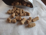 今日のわくわくucs/img/char/char2/038gif" alt="音譜" />ワンごはんはイワシのたたきと野菜入りおじや[材料]刺身用イワシ、さつまいも、かぼちゃ、小松菜、わかめ、冷凍シジミ、しょうが、ごはん[作り方]さつまいも、かぼちゃ、わかめを食べやすい大きさに切り、シジミと一緒に煮ます柔らかくなったら仕上げにごはんと小松菜を入れてひと煮立ち下処理をしたイワシを包丁で叩いてタタキを作り、おろししょうがひとつまみ入れて混ぜあわせ、野菜入りおじやと召し上がれ♪写真の野菜入りおじやは、かぼちゃが溶けて黄色くなってしまいました(^^;イワシのたたきは、たたきというよりミンチですね(汗)ウチの愛犬は生肉を好みませんが、たたきやミンチにして、ごはんと混ぜてグチャグチャにすれば食べます写真のごはんも、混ぜ合わせてから食べさせましたその見た目ときたら、焼く直前のお好み焼きか、もんじゃのようなシロモノですお世辞にも美しいとはいえません(汗)イワシのたたき(ミンチ)は大量にできてしまったので、残りは人間のおつまみと、イワシハンバーグにしてその日のうちに焼き、翌朝には愛犬のお腹の中に入っていったのでしたよく食べるなぁ(笑)ところでちょっと前に、「ワンワンの日だものペットちゃん(わんこ以外もOK)をキレイにしてあげよう」というイベントに参加しましてこんな洗剤のことを知り、使ってみることに♪↓↓↓↓↓↓↓↓↓↓↓↓「地球洗い隊」というところの、バイオ洗剤「とれるNo1」合成界面活性剤不使用の、ペットにも優しいという洗剤ですこの「とれるNO1」は、米ぬか、フスマ、酵素、そして有益微生物からなる、地球にやさしいバイオ洗剤なんですって食器から、お風呂、トイレ顔のクレンジングにまで使えるというからビックリぃ(汗)使える幅が広すぎませんか(笑)愛犬クンのトイレ用ケージなどをお掃除できる“いい洗剤”が欲しかったんですよねだってエタノールで床を拭いたりすると、匂いが強いせいか、様子を見に来た愛犬クンが「クシュン!」としたりするんですもの(^^;なので、この地球にも優しい「とれるNo1」を使ってみましたまぁ、汚れ落ちについては半信半疑で使用スタート優しさが売りの自然派のものって、汚れにも優しかったりするから(汗)しかしっ!!「とれるNo1」の名前は、伊達じゃなかった汚れ、めっちゃ落ちる!!最初に試したのは、お風呂場のイスや洗面器湯アカや黒カビがつきやすいですよねしかも落ちにくいそれなのに「とれるNo1」をブシューブシューとスプレーしておいたら、、湯アカなどはスーッと取れてしまいましたうそーーーーっ!?さすがに黒カビは一度じゃ落ちなかったけど、普通の洗剤ではありえないくらいカビも流れ落ちたからびっくりむふふこりゃ、いいもの見つけたわ♪これは年末の大掃除がラクになりそう(^^)ちょっと米ぬかの匂いのする洗剤ですけど、汚れ落ちと安全性から見たらかなりの優れものです人間のクレンジングにも使えるくらいなので、おさんぽで愛犬の足がひどく汚れたときなどにも使ってます足にシューッとスプレーしてモミモミそのあと洗い流せばスッキリ♪残留洗剤の心配もないからグーです何よりナイスなのは、愛犬に安心して使えることですねその他にも、色々なところで使ってみようと思いますにほんブログ村おそうじしながら地球も洗おう!ファンサイト応援中