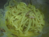 こんにちは!!昼を過ぎましたもうお食事はされましたか?うちのお昼は冷凍うどんを使ってカルボナーラです どこかの居酒屋さんできしめんのカルボナーラ