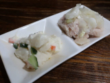 生ビールで乾杯した後水餃子(5個)とポテトサラダと蒸し鶏ネギソースをお願い