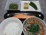 夜は過日半額となっていた京都やま六さんの紅鮭の西京漬@259円などにて定食に 付け合わせは浜名湖産青海苔入りの自家製玉子焼にオクラのおひたしと水戸納豆に 舞茸とぶなしめじとエリンギと玉葱と人参と蕪ともやしと万能葱入りのけんちん汁 【アンケートモニター募集】ワインのおつまみについてのアンケートに答えていただいた方から抽選で、ワインに合う商品をプレゼント! 続きを見る ['close']