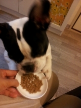 コジマ通信販売ファンコミュニティーファンサイト参加中 今回、ペットのコジマさんより「プロフェッショナルバランス」というプレミアムなドックフードをモニターさせて頂きましたいやしいbooは届いたそばからクンクン 開けたら金色に輝く「プロフェッショナルバランス」が このドックフードは犬の臨床栄養学から生まれたクオリティフード!という事で、健康的な成犬の体格を維持する為に考えられた適切な栄養バランスで、日本の成育環境を配慮した低カロリーの国産フードだそうです フレンチブルドックのbooはテリアよりなのか、フレブルにしては顔が小さいのですが、やっぱり太りやすいので、食事には気を付けています もちろん国産にこだわります 人間は自分で産地や原材料を選んで食べる事ができますが、わんちゃんは自分で選べません だからこそ、飼い主である私がちゃんと納得のいく食事をさせなければいけないと思っています 最近は以前食べていたフレブル専用のドックフードがリニュアルした物をあげていたんですが、便の調子がいまいち良くなくて 食いつきはいいんですが、ちょっと心配で、ちょうどbooにベストなドックフードを探していたところでした! さっそく試食 中には500gの袋が2袋入っていました 色は無着色という事で、白っぽい感じ 臭いはきつくありません! 初めに食べていたサイエンスダイエットは臭いがきつくて保存が大変だったので 美味しいのか、顔を突っ込んでがっついてます!! あっという間に完食 気になる便の調子は今のところ正常に戻りました また、前回フードを変えた時に出来た背中のポツポツも薄くなりました! 今回は1kgをモニターさせて頂きましたが、今のところ食いつきも良く(良すぎる)調子もいいです! 今まであげていたフードと比べると若干お高いですが、食事はbooの楽しみの一つなので、booの定番にするか検討してみます ごちそうさまでした コジマ通信販売オンライン Android携帯からの投稿 続きを見る