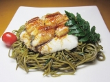>熊本産甲佐うなぎの山椒茶蕎麦のペペロンチーノもどき〜 こんばんは〜まだやってる熊本産甲佐ウナギのアレンジ料理〜だって美味しいんだもんねぇ〜頂いたのは冷凍のかば焼きなので〜ワイン煮込みや中華など、色々考えたけど、せっかくの美味しいかば焼きのお味とかば焼きを焼いてくれた人の気持ちも考慮しまして〜かば焼きの風味を壊さないようにアレンジ中で〜す今日のはねぇ〜熊本産甲佐うなぎの山椒茶蕎麦のペペロンチーノもどきぃ〜用意するもの〜(1人分) 0 美味しい甲佐うなぎのかば焼き食べたいだけ〜 0 茶蕎麦1束 0 木の芽3〜4枚 0 粉山椒適量 0 市販のウナギのかば焼きのタレ大さじ2〜3 0 バター1片 0 長芋適量作り方〜 0 茶蕎麦を茹でます 0 フライパンにバターを入れて溶けたら茹でた茶蕎麦を入れて市販のウナギのかば焼きのタレで炒めます 0 粉山椒を振り、できあがりにきざんだ木の芽を入れて余熱でオッケーです 0 お皿にもって長芋のトロロを上にのっけて〜 0 美味しい甲佐ウナギのかば焼きを盛り付けますでっきあがり〜茶蕎麦を炒めても香ばしくって美味しいんですよかば焼きのタレと木の芽がグッドで〜す熊本産甲佐うなぎはジューシーで美味しいですよわくわく倶楽部ファンサイト参加中明日もみなさまにとって楽しい1日になりますように〜 続きを見る