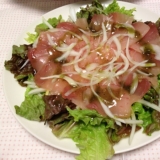 先日、 バジルソースのカルパッチョを作りました 使ったのはこれ 日本食研 カルパッチョ バジルソース このソースに合う魚介類は サーモン タコ ホタテマグロ タイ ブリ ハマチなど とのこと まずは旬の物を使いたかったので、 私の大好きなマグロを使って 作ってみることにしました まずは…って言ったのは、 なんと3袋入りだったからです そして 作ったのはこちら 他社の製品に比べて、 バジルが青臭くなく、 そしてチーズの風味が豊かでした だってね、 ジュンくんがもりもり食べてたもん ハーブは好き嫌いあるので 苦手かな?と思いきや かなりお気に入りな味だったらしい 3つもあるなら、 ぜひまた作ってと お魚の臭みも全く感じず 美味しくいただけると思うので、 ハーブが苦手な方にもぜひぜひ試してもらいたい商品だと思いマス 実はこれ、 私のお誕生日のメニューの一つなんだけど、 新年会などのパーティーも、 オシャレに演出してくれると思います 作り方は簡単! 玉ねぎのスライスは必須!ですが、 あとのお野菜はお好みで お刺身を用意して、 野菜と一緒に盛り付けて、 ソースをかけるだけ ぜひぜひお試しを 日本食研のファンサイトファンサイト応援中 iPhoneからの投稿 続きを見る ['close']