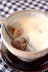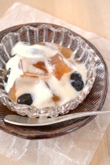 先日頂いた発酵黒生姜茶をゼリーにしました そのまま飲んで美味しいお茶なのですが、 暖かくなってきて、こんな軽いスイーツが食べたくなりました いつもはアガーで作るゼリーも、今回は粉寒天を使って マクロビでは、寒天は緩める作用が強い食品 春に向けて、気持ちも身体も適度に緩めて、デトックスしなくては! 白い泡は豆乳を泡立てて作りました 黒生姜茶のピ 続きを見る ['close']