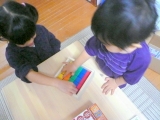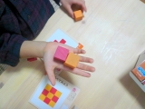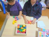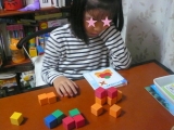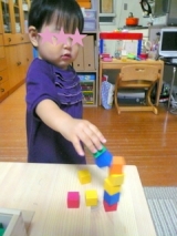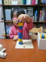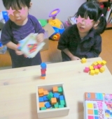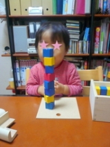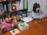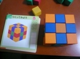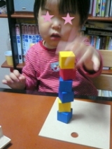 先日ご紹介した『ずけいキューブつみき(くもん)』( くもん出版 fansiteファンサイト応援中)姫もチビ姫も夢中です(前回の様子はコチラ→*)姫はパターンカードの平面を一気に仕上げ、すでに立体の応用編へ突入只今、真剣に考え中やった!! 出来た!!この立体、大人にとっては対称的で簡単に見えますが、姫を観察していると、カードの図で見えない部分を想像するのに結構集中力を要するようですまだ慣れない幼稚園帰宅後、お昼寝なしで一日を過ごし、この時点ですでに10種類ぐらい仕上げたので、これを仕上げて一気に疲れた様子そして、チビ姫も姫の横で真剣に挑戦中でございます積み木を積み上げるのも、かなり上手になりましたよいしょっと もう1つ、、、、 でちたーっ!!!そして、最後は惜しげもなく「ダーーーッン!!!」とやっちゃいます(もしかして、これが目的!?!?)そろそろお風呂の時間です今日も楽しく、お片付けまた明日やろうね 続きを見る ['close']