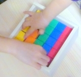 覚えておられますでしょうか? 『くもん『ずけいキューブつみき』って楽しそう!!』でご紹介した積み木のコト くもん出版様から届きました くもん出版 fansiteファンサイト応援中 育児休暇延長&保育園退園&幼稚園転園手続で、ちょっと気分がめいっていたある晩に 我が家へ突然届いた大きな箱 宅急便が来たら、自分たちのプレゼントだと思っている我が家の2名様に、 「ママの荷物だよ」と言いながら開けてみてびっくり子供たちにっこりヽ(^o^)丿 「早く開けて」と、興味津々のチビ姫が離れません(で、手が写っています) 箱を開けると、早速積み木を取り出す2人 箱の写真の通り、とてもきれいな色です 「私のよ!!」と(無言ですが)取り合う5歳児と1才児 箱から出すと、すぐに仲良く積み木遊び 色のきれいな積み木が50個も入っているので、二人で遊びだしても十分足ります 箱を開けるまで分かりませんでしたが、積み木のサイズが絶妙、良い感じ 丁寧に面取りされていて、ギュッと握っても、足で踏んでしまっても、角が刺さりません 5歳児の掌でこんな感じ 大きすぎないので、チビ姫(1才)にもしっかり握れます しっかり握れるという事は、扱いやすく、積みやすい ほらほら、いつもは積み上げた積み木を「ダァーーーン!!!」と言いながら 崩すのが専門のチビ姫も器用に積み始めました これには、母も父も感動しました 一方、姫は積み木のパターンカードを見つけて、並べ始めました 平面パターン18種類、立体パターン18種類 が、突然チビ姫が乱入 パターンカードを姫から奪い取り、離しません その後、チビ姫30分間パターンカードを絵本のように眺めたり、 カードを持ったまま積み木を積んで、時間終了お風呂の時間です 片付けは、この箱に積み木をなおします 収納箱が付いているので、お片付けにいいなぁとは漠然と思っていましたが、 箱に収めるのには大きな利点が袋じゃダメですよ お片付けの時に、足りない積み木が分かるのです 「赤が1つないよ」と、子供が自分で探せます 「姫はもっとやりたかったのに」と言っていましたが、 これから毎日出来るんだから、焦らず焦らず 初めてくもん『ずけいキューブつみき』をした我が家の子供たちの感想は、 姫(5歳児):楽しい!!! 次は(パターンカード)4番からするのが楽しみ!!! チビ姫(1歳児):(まだ話しませんが)このきれいな積み木とカード、お姉ちゃんには渡せないわ!!! という事で、1歳児も5歳児にも楽しめる積み木、お勧めです 続きを見る ['close']