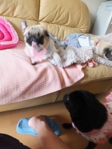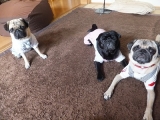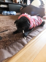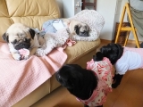 Buddyくんのお泊り保育も昨日で最後関西に帰ってしまって、寂しいわ遊んでもらった、お友達のみなさん、ありがとうございました★お泊り保育 2日目朝パパの新聞の上に乗ってる、Buddyちゃん^^前日の夜はこんな感じで、まったりくつろぐBuddyちゃん↓↓↓Buddyくんとちゃこの距離は、微妙に遠い??マナーベルト着けたらナプキンの位置が悪いみたいで洋服まで濡れちゃってBuddyくん、何回もお着替えさせちゃってごめんねB)おはようございますママがいないと私に、べったり甘えるBuddyくん寂しそうでもなく、まったりとゆっくり寝れたかな??夜中にちゃこがうるさいんだもんご飯を食べてパグズも私も二度寝4時間後さて、お散歩に行こうかなって外出ると、お天気良すぎで、暑すぎるベランダで、布団を干しだすとみんなで、日向ぼっこが始まっちゃったひ)眠すぎる夕方から、城南島に行く事もあったのでお散歩、さぼってお家でまったりおパジャマも色違いのお揃いだけど、今日のお洋服もお揃い♪ふふふふB)ひめちゃん、、今日も可愛いね[高画質で再生]ひめちゃん、大好き[広告] VPSナイスカップルだわそうそうちゃこも、お揃いなんだけどねペピイ臭いの元を除菌消臭!水感覚で使えるプロトクリンウォ-ターを合計10名様 続きを見る ['close']