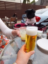 散歩しながら途中休憩に、行ってみた田園調布倶楽部住宅街の中にある一件のレストランコチラはテラス席のみワンコOKのお店HPで見ると凄く、ゴージャスなイメージ高級店か??お茶のつもりだったけどやっぱりコレワタシは生ビールで、ちびポンさんはソルティードッグで乾杯★ハッピマンスリー アルコールは何でもワンコインで飲めます♪私達が座ったテラス席の前は駐車場になってるので風景がイマイチなんだけどいっぱい歩いた後のビールはやっぱり美味しいひめちゃこもくぅちゃんも、ちびポンさんから美味しい物いただいて、みんな満足顔この後、歩いて帰る元気もなくひめちゃこ2頭、カートでの電車移動に挑戦!!疲れてたからかとっても良い子でしたよ電車に乗ってる時間、5分くらいだったかな(笑)そして、またまた寄り道お肉屋さんがやってる焼き鳥屋さんの前を通ったら食べたくなっちゃったこちらの名物はレバフライなんですがねおじちゃん、いつもサービスしてくれます待ってる間に、いろいろ試食をくれてビール飲みたくなっちゃうのよねよく飲んでよく歩いた1日でしたまた、ロング散歩しましょうね人が食べれる食材で作った評判の「無添加ドッグフード安心」本品を3名様モニター! ←参加中ドッグフード無添加安心本舗 続きを見る