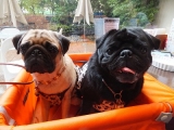昨日の日中は猛暑だと思ったら夕方から、急に涼しくなり今日は、ものすごく過ごしやすい1日でしたね午後から雨になっちゃったけど今日は、お友達と久々のお出かけララポート横浜にある、ジョーカーズダイニングにやってきました今日で2歳になったお友達のくぅちゃんお誕生日おめでとう★今日はみんなで美味しい物食べようねと言う事で、ひめちゃこも大喜び!!若鶏とキャベツのスープ煮を注文したらあっという間に完食ワンコ達が落ち着いたところで飼い主達の、ランチタイム♪ゆず茶と、デザート付きYammmy!!オヤツもいっぱい食べてパグズはお疲れモードで、良い子に寝ちゃいましたひめは、床で寝てたのだけどくぅちゃんは、しっかりプレゼント背中においてあごのっけて、寝てる姿が、可愛いかったわ雨で、お店にあるラン使えなかったのが残念だったけどね平日は空いてるので、ゆっくり出来て気分転換出来ましたくぅちゃん、ちびポンさん、ありがとう★▼獣医師が愛犬の健康を考えて作った『鹿肉』ドッグフード★モニター10名大募集▼ ←参加中 続きを見る ['close']