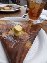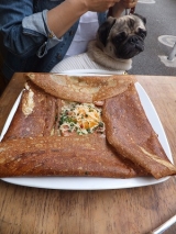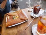 ★★BUDDYちゃんお泊り最終日★★食べて、お散歩そしてまた、食べる飼い主達^^MAKIKOさんと一緒に、大好きなクレープ専門店へ久々に来ましたこちらのお店、そば粉のガレットとクレープの専門店でかなり人気のお店で、いつも混んでます店内、ワンコOKだけどこの日は、初めての外ランチ時だったので、外の方が安心だMAKIKOさんと半分して卵とチーズ、チョリソー入りのガレットを注文初めて食べる、ガレットめちゃウマです!!★★★★★5つ星!!大きいけど、薄いからねもう一枚たべれちゃいます^^もう一枚は、いつも食べてるクレープを注文シュガーバターいつもは、生クリームを添えてもらうのだけど今回忘れた!!見せて生クリームなしで正解美味しかったけどさすがに、1枚半はお腹いっぱいに関西帰ったら当分食べれなくなるからねこの日は特別★良い子にしてるよこの後は、またまた移動です本場韓国より直輸入!!黒い!?韓国冷麺をお試し下さい 続きを見る ['close']