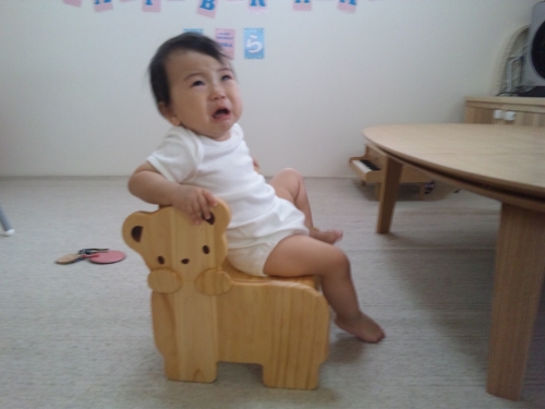 はじめての自分専用の椅子が大のお気に入り椅子から降りさせようとするものなら、この有り様!