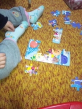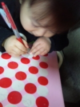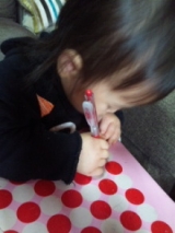 我が娘をすごいっ!って思ってしまった(笑)親バカけど、パズルを一人でこんなにつなげたよそしてゆきやこんこ♪ってうたいながらなにか描いてるなって思ったらこれは雪だるま飾ります