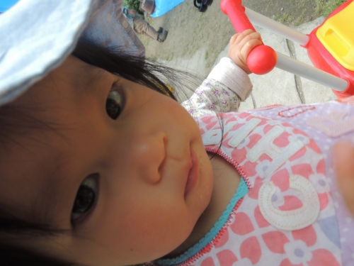 義実家で、アンパンマン号を楽しく押しています(^〇^)