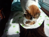 日頃、同じ屋根の下で過ごしている私とニャンズでもニャンズは2階で私は店番があるので1階にいないといけないため同じ部屋で過ごせるのは、ほんのわずかな時間だけです特に最近は短期だけど仕事に行くことがあるのでそんな時は朝だけ少し一緒にいられるくらいで実話、私は寂しいと思うことがあるのですところがそんな悩みを解消してくれるアイテムを現在2か月のお試し中なの♫それは中央システム技研株式会社さんのremoca2リモカ2水飲み器一体型ネットワークカメラ無線LAN対応(無線/有線LAN対応)ペットボトルによる自動給水方式付属の専用ペットボトル用アダプターキャップを使用水飲み皿は簡単に取り外し洗えます2回分のおやつポケットスマホなどから遠隔操作でフタが可動しますおやつ皿は2つあるので2回分のおやつを与えることができますペットに“声かけ”スピーカーとマイクを内蔵、音声による双方向のコミュニケーションが楽しめますカメラは上下左右に首振り上下左右の首振り機能がありますスマートフォンなどからカメラを遠隔操作できますペット目線のカメラで近づいてくるペットの表情や水を飲んだり、おやつを食べる様子や思いがけない行動を見ることができます動体検知自動録画!メール通知!動体検知を使いペットが近づいてきたときに自動録画することやメールで通知することが可能ですスマホなどに映像をキャプチャー保存できますメール通知機能を使用するにはメールアドレスの登録が必要です夜も安心!暗視機能付き!最大照射距離15mの赤外線LEDを10個内蔵しています赤外線LEDは肉眼で光っているかの確認はできません暗視撮影ではモノクロ映像となりますYoutubeにアップできる!リモカのライブ映像をその場で最大90秒間スマートフォンに録画できます映っている映像をキャプチャー(静止画の保存)ができます小さな体で多機能!!私の世代からすると子供のころに想像してた未来の世界が、そのままリアルに登場したって感じ゚+(ノ・ω・)ノオォォ゚・ 早速設置しようと息子に手伝ってもらいながらあ~でもないこ~でもないと四苦八苦しました思いのほか無線につながるまでが大変だったけど繋がってしまえばこっちの物あれもしたいこれもしたいしたいことがいっぱいあってとにかくスマホからニャンズ達の行動を見てたい!!って思いました息子や主人ブー ( ̄(▽▽) ̄) のスマホにもアプリを入れました家族みんなで楽しむことができるも。゚+Σd(・∀・)゚+゚イイ!!ただ…動画なんですけど息子と主人ブー ( ̄(▽▽) ̄) のスマホは同じ機種で、問題無く再生できるんだけど私のスマホは、ちょっとおバカなのか再生できませんでしたいろいろな動画再生アプリを試して、やっと再生可能なアプリを見つけられたので今では動画も楽しんでいます♫それでもyoutubeに投稿したりdropboxに入れたりができずスマホのアプリからしか見ることができなくて、ここに転載できないのが残念です(⊃ω`o)ゴメンナサイそれでも写真はたくさん撮影しました!!v(〃☯‿☯〃)vあぃ!《小筆さん発見の巻》ちょこんと座ってたたずんでいる小筆さん発見!!おやつの蓋をあけ、マイクを使い「こふで♫こふで♫」と連呼してみた ↓ のっしのっしと近づいくる小筆さん ↓おやつを発見!!手ですくおうとしていますww ↓おやつの次はキャットフードも食べ始めましたさすが大食漢小筆さん!マイクで「おいしい?こふでさん、おいしい?」と声をかけると… ↓=①①= ふにゃ?って顔をしてカメラをガン見 ↓しばらく見ていましたが、飽きたら元の場所に戻って行きました 《ミミコちゃん発見の巻》ミミコちゃん発見!!すぐさま「ミミコぉ!ミミコぉ!」と声をかけると、こちらに反応してくれました ↓そろりそろりと近づいてきます ↓やっぱりミミコちゃんも手でおやつをゴソゴソ… ↓美味しそうに食べています「美味しい?ね、美味しい?ミミコ」って声をかけても、おやつに夢中 ↓残さず綺麗に完食していました♡《夜の小筆さん》暗闇に浮かびあがる小筆さん発見!! ↓マイクで声をかけると、こちらに気付いた!!目がキランとLEDに反射しています ↓やっぱり手を使っていますねww以前モニプラさんのモニターで手を使っておやつを取りだす猫用おもちゃを頂いてから癖がついたようです ↓ 美味しく召し上がっていますね明日は何のおやつを忍ばせておこうかな♪((O(〃⌒▼⌒〃)O))♪わくわくとっても楽しいremoca生活ができて嬉しいですカメラが猫目線にあるので、新鮮な角度からの撮影ができるのが楽しいです声もちゃんと聞き分けてくれてるのがわかったしおやつがもらえると覚えたのか最近は反応が早くなりました給水もペットボトルで楽ちんです少なくなったら綺麗な水が出てくるのが良いですね。゚+Σd(・∀・)゚+゚イイ!!ただ、ひとつ注意点が…猫用のカメラなのに主人ブー ( ̄(▽▽) ̄) は時々私を監視してることに気付いた掃除したりニャンズのお世話をしていると何故か視線を感じることが、たびたびありふとremocaに目をや