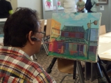 昨日、西宮ガーデンズホールにて開催されていた口と足で描く芸術家協会さん主催の「口と足で描いた絵画展」を観に行ってきました【口と足で描く芸術家協会】は両手の自由を失った障がいのある画家たちが口や足に筆を取って描いた絵を素に、グッズを作成は販売し、その収益により画家達の自立を目指していますとっても良い秋晴れの金曜日主人ブー ( ̄(▽▽) ̄) に車を運転してもらい西宮に向かいました夫婦で東向きのお出かけは久しぶり♪(主人ブー ( ̄(▽▽) ̄) は都会が苦手らしい)途中、少し渋滞があったものの予定よりも早く到着初めての西宮ガーデンは大きくて広くて、すっかりお登りさん気分超がつくほどの方向音痴の私だけだったら絵画展の会場に辿りつけたかどうか(´∀)ふっ… 野生の勘を働かせ場所を特定する主人ブー ( ̄(▽▽) ̄) の後を着いていき無事に到着した会場は、こちら((o(ΦωΦ)o))わくわくしながら入場※写真に映ってるご婦人ほど私はスマートじゃありません入り口近くからズラーっと見事な作品が並んでいて、言葉を失う迫力でした小鳥のフワフワ感が伝わってきて、手で包みこみたい!って思いましたそれぞれの小鳥の動きに個性があり物語ができそうです海外からの作品も多数展示されていました画家の方たちのプロフィールも掲示されていたので、その人のことを思いながら絵を楽しむことができ、より作品に重みを感じました竜宮城ってこんな感じかな?それとも沖縄かハワイでスキューバしたら、こんな世界が広がってるのかな?って暫く妄想絵本の挿絵のような可愛い作品今から、みんなで収穫祭りをするのかな??私も参加したいですwwうんうん!わんちゃんって靴好きだよね♪っていうか、うちの仔ニャンコも主人ブー ( ̄(▽▽) ̄) の足臭付きスリッパが大好きなのだが(´ω`;)ポリポリちょうど今の時期とリンクする季節紅葉と広がるのどかな風景が心をホッと和ませてくれる作品ですとっても個性的な色使いで魅力ある作品私は好きです♪ピンクの小道!!イキイキとした花が本当にそこにあるかのように感じました可憐で色っぽい(?)こんな花に憧れを抱く女性は多いはず会場には数点、絵画以外の作品も展示されていましたこちらは「さをり織り」足でも布が織れるように改良された機織機で作られたそうです1本1本の糸から布に仕上げるまでの気の遠くなるような長い時間を想像すると作者の方の思いが強く感じられ余計に作品が輝きを増しました遠い昔、棒網でマフラーを編もうとして途中で投げ出した私が (/。\) ハズカシイ部屋の中に花があると、空気が変わりますよね白い花の存在感が静かに、でも強く感じられます見てるよこっち見てるよ日本語通じるかな目ヂカラが印象的、筆遣いも力強くて迫力がありますゴッホのひまわりを連想させる趣のあるひまわりが良い!高級なソファーが置いてある応接室に飾りたい(応接室無いけど)おそらく、たっぷりのレモンティー(だと思いたい)色使いが落ち着いていて柔らかな空気が漂います花の一番美しい瞬間を切り取ったよう派手な装飾をせずとも素のままの美しさを感じさせてくれます額縁から飛び出してきそうな迫力!大きな帆船の風格と風の強さが、本当にそこに存在するかのようです仲間になって一緒にお昼寝したいZZZ気持ち良さそうに眠るこぐまさん達は兄弟かな?お友達かな?笹おいしいよ?食べられないの?って言われてるみたいwwパンダさんの可愛さとコケティッシュなとこが良く表現されているなって思いました思わず「うちの仔にゃにゃや!!」って主人ブー ( ̄(▽▽) ̄) と喜んでしまった左の子ねこちゃんが、そっくり!!子ネコっって本当かわいい・゚(´∀`)ホェ・゚ お月様と蝶々がプチ幻想的な世界をかもし出していて優しい世界観を感じました男性が描いたとは思えないほどの繊細な優しい作品だと思いますこんな所の川の水って、そのまま飲めるんだろうな透明な水と空気が気持ち良さそう♪バックの雄大な山並みが威厳を感じさせます水って絵に描くの難しいと思うのに本当に水が流れているように見える河に感動!!緻密な線で船や建物をくっきり描いていて素晴らしいです海外の、こんな町にあるオープンカフェでお茶してみたい!壁の色が鮮やかで日本では見られない町並みです夢の中の世界のような、ちょっと不思議な絵です家族で音楽を楽しんでるのかな?個性的な作品に見入ってしまいました街のにぎやかな雑踏が聞こえてきそうです1つ1つの窓の中に、いろんな人の生活が存在してるんだろうな大きな絵の中に引き寄せられました2点だけ展示されていた書道です私なら手でも書けません見事に達筆な作品に圧倒されました!写真のように鮮明で驚嘆させられた作品です藁葺き屋根や道の土、山の木々に草花の質感が素晴らしい家の裏から鍬を持ったおじいさんが出てきそうメルヘンチックでサンタさんが登場しそうですクリスマスを連想して、ケーキが食べたくなりましたww教会の屋根の色や雪が積もった木が綺麗