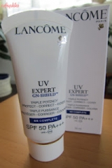 最近BBクリームっていうものが流行ってますよねドラックストアにいけば1000円くらいから色んなBBクリームが揃ってますやっすいものでも自分としては十分だなーと思ってたのですが、今回ランコムのUV エクスペール エッセンス イン BBっていうものを試してから、やっぱりハイブランドは違うなと今回お試ししたのは30mlの小さいサイズですでね、これがすごいなと思った点はね、まず写真を見せますねSPF50 PA+++っていうのと、UVB+UVAっていう表示がありますSPFとPAっていうのは日焼け止めには必ず書いてあるものなんで見知っているものでしたが、UVBとUVAってなに?って思ったんで調べてみましたどうもね、紫外線の種類のことみたいなんですが、簡単に言うと、UVBは、火傷のように赤くなったり(サンバーン)、メラニン色素が沈着して褐色になったり(サンタン)、シミやソバカスの原因にもなるものUVAは、シワやたるみといった肌の老化現象を引き起こしたり、メラニン色素の合成を増やしてシミが目立つ原因をつくってるんだそうですひょえー!知らなかった-(ー_ー)!!ランコムのUVB+UVAの表示はバランスのよいUV防御力を示すそうで、EU圏内で推奨されている表示なんだそうですほー因みにね、SPFとPAはそれぞれの紫外線を防ぐ指標で、SPFはUVBの指標、PAはUVAの指標なんだそうですSPAは数値が大きいほどUVBからの防御率が高くなるし、PAは+が多いほどUVAからの防御率が高くなりますSPFも大事だけど、PAも一緒に指標が高いものを選ぶべきだったのね知っといてよかっただから、こういう意味でもランコムさんのBBクリームは優秀ですごいですでね、これを実際出してみると、なんだかグレーがかかった自分のお肌とは程遠い色味してますランコムのなんだからって信じてお肌にのせてみるとね、すぐにお肌になじんでくれましたあんなグレーっぽい色してるのに不思議です(o)クリームはねとても伸ばしやすくて、厚塗り感がまったくないよ最初はちょっと白っぽい肌になるんだけど、しばらくすると馴染んできます私としてはそんなにカバー力はないかなと思いますが、自然に艶やかにしてくれます毛穴なんかも光の加減なんでしょうか、すこし目立たなくしてくれます一日つけてるとやっぱり崩れはあるけど、乾燥はしないし、重たい感じがないから結構快適ファンデよりもBBクリームのほうが使用感が軽いからほんとラクだよあとね、落としやすいから、その点もよかったです大事につかおうっ!※モニプラのイベントに参加してます コスメブランドショップのコミュニケーションサイト「Luxe beaute(ラグゼボーテ)」イベント参加中!!ランコムUV エクスペール エッセンス イン BB ふん、と思ったら押してもらえると嬉しいです励みになります(^^♪ 続きを見る ['close']