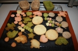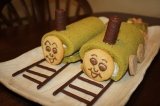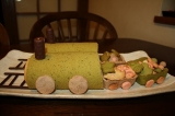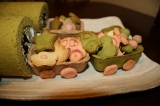 先日アプちゃんも2歳になりましたぁぁ 実家での誕生会、ケーキ担当を買って出ました っと言うのもロールケーキ型を買ったものの未使用だったので 今まではオーブンのプレートをそのまま使っていたので、馬鹿でかいし隅っこに溝はあるしで成功したのは1回のみ 今回は誕生会のケーキ 失敗は許されません ってことで、お菓子作り上手なパンレッスンメンバーにお願いして一緒に生地作り レシピはクックパッドの人気レシピの「純生ロール」 わかりやすい手順でいい 4人で研究しながらレシピに忠実に(一人だといい加減な性格なので忠実にしてないかも??) でっきたぁぁぁ きめ細かくてぷわっぷわ〜〜 抹茶が肌理荒っっ 生クリームにアプちゃん大好きな黒豆と栗を入れて巻いて一晩お休みぃぃぃ 翌日 アプちゃんはトーマスが大好きなのでトーマスのケーキをっと思っても青はいただけない なのでパーシ―のケーキにしました去年と一緒なり トーマスのキャラの顔って意外と難しい、、、、、 どれもこれもイマイチなお顔立ちで パーシーの後ろに付ける滑車や荷物のクッキーをぼこちゃんと作りました 久々に一緒にクッキーの型抜きしたらびっくりする位上手に伸ばしたり型取ったりできるようになっていました 「パティシエになればぁぁちゃぁちゃん試食してあげるわぁぁ」なんて勧誘もしてみたり 子供ですね 3色団子を作るところが独創的 たら〜ん 完成 アプちゃん大喜びぃぃ、、、、、はせず わからんのか 興味も示さず クッキーばっかり食べてた親不孝者 頑張ったのに 親の心子知らず 一方姉、ぼこちゃんはご飯終わった直後からケーキの前に居座り「煙突とか2本しかないけど誰食べる?ぼこちゃん大きいのに切ってね〜」なんてうっきうきなのに 果たしてお味は、、、、 大成功 ふわっふわだ〜〜〜 助けてくれたお友達に感謝 一人でも成功させれるかなぁぁぁ 不安 誕生会前珍しく4時過ぎてもお昼寝から起きて来ないアプちゃん 夜に備えての主役の行動か?? 準備を手伝わなければいけないしそろそろ起こそうかと旦那がベッドルームに迎えに行きました 「おいっっ来てみっ部屋火サス(火曜サスペンス)状態やぞ」っと ジャッジャッジャ〜ン 部屋が荒らされてる そしてアプちゃん こんにゃろっっ ティッシュ全部出して細かくちぎったりしてやがった 途中ウチして目を覚まして荒らしたのでしょう 部屋中ウンチ臭っっ 2歳になってもまだまだ手がかかるご子息です こんな時に限って大声出しても起きないしっっ 【コントレ】vol8 有機小麦粉平飼いタマゴ使用のカップケーキをみんなで試食 続きを見る ['close']