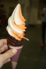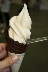 「全国うまいもんまつりスペシャル」に行って来ました 何と有料で大人600円3歳以上400円 高くない??? 芸能人のステージもあるのでその値段で芸能人に会えると思えば安いかぁぁ幸い入場券を貰ったのでラッキーっと思い初日に行って来ました ちなみにその時にいたお笑いコンビ「ぶんぶんボウル」 知っている人ぉぉ 私の狙うは「マダムシンコのマダムブリュレ」 お昼過ぎに行ったので売り切れ 堂島ロールは並べば買えそうだったけど食べたことあるのでまっいいかぁぁ B級グルメ好きなので買いたいものばっか お財布の紐が緩みます 富士宮やきそば これは間違いなく美味しいので んんんんっやっぱり美味しい 岡山県のB級グルメホルモンうどん 麺が柔らかい感じですね私はコシのある感じが好きですねぇぇ 味はいいですよ〜 旦那は結構はまってました 「いさみや」の宇都宮餃子 可もなく不可もなく「特別」な感じではなかったです デパートの催事などでもよく買うのですがまだ「特別」な一品には出会えない宇都宮餃子 「四喜」のカニいなり かに???行方不明 「地雷也」の天むす これは美味しいですね 名古屋に行った時たまに買います どこで買ってもはずれのない感じ どこのだろ??7串カツ まぁフツーの串カツですね 「北島商店」のメンチカツ 北島康介の実家ではないかとお友達が言っていました 玉ねぎの多い感じで柔らか〜なメンチカツです 数日後母がメンチカツ作ったら「こっちの方が美味しい」っと旦那がいい義息子だことっっ 「鉄板焼きゆうたろう」のホルモン焼き ホルモン大好き 美味しいっ 「ゆうたろう」ってあの「ゆうたろう」です あのってどの???って思った方はこちら すっごい感じがよくて「写真撮っていいですか?」と聞いたら「はいはい!っと言ってカウンターから出てきて「おじさんの抱っこ嫌かぁぁ?抱っこするねぇぇ」と自らぼこちゃん抱っこしてくれました 私達の後も写真をお願いされていましたが嫌な顔せず「キメのポーズ」で一人一人対応していました ってか、ギャル曽根ちゃんがフツーに会場内を買い物していました 誰も気づいてない様子 「写真撮らせてもらっていいですかぁ」とまたまたミハー精神旺盛で頼んでみたら「あぁっいいですよ〜」とにっこり でもマネージャーらしき男性が間を遮り「写真はご遠慮ください」っと ギャル曽根ちゃんは「ごめんなさいね〜〜」「でも今回だけ特別 1枚だけ」っと彼に頼んでくれました 「人が集まってくるからダメ」の一点張り納得納得そりゃそうですミーハーな心に反省 「すいませんね〜ホントごめんね〜」を連呼しながら去っていきました 優しい むちゃくちゃ感じいい ファンになりました デザートがてら甘いパン 「ハートブレッドアンティーク」のアン食パン 写真の断面は少ないですが、あんこがむっちゃごてごてと入っていました デザートな感じですが美味しい 400円位で安かったし満足満足 このパンがよかったので話題の「天使のチョコリング」買って帰りました 翌朝食べてみました でかっっ こちらもチョコぎっし〜り 周りがデニッシュみたいにパリパリでパンはハードな感じ 結構好きなタイプ ホントチョコたっぷりでこれもデザートな感じ これで525円もお買い得 えっと、会場に戻って、、、、、、 あんだけいっぱい食べて満足したはずなのに甘いものは別腹 アイスはどこで食べよう、、、、行列のできているお店に並んでみました 「小樽ソフトクリーム北氷菓」のミルクソフト 濃厚アイスではなくシュワシュワっとした感じのアイスです(わからない表現ですね) カンドーはなしかな ぼこちゃんは夕張メロンとのミックス 旦那は生キャラメルかけ これがNo1かな いや〜いっぱい食べました ここでしか食べれないっっっと思ったら欲張ってしまって それでもまだまだ食べたいお店はあります キムカツ、佐世保バーガー、「赤鬼」のたこ焼き名残惜し 姉家族が行かないと言っていたので券をもらいました 今日また行ってみるか悩みます、、、、、散財するのが怖い かのこ6種類を使用したアイデアレシピ大募集!200g×6種類、50名様一挙当選! ←参加中 続きを見る ['close']