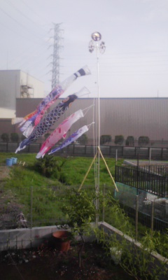 庭の鯉のぼりが風にゆられている所です