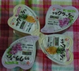 3時のおやつが食べたくで、カロリー控えめの蒟蒻畑 ララクラッシュをいただくことにしました ララクラッシュ クラッシュしてあるわけですね いただくのは、ぶどう味とパイナップル味パイナップル味の外装のお写真はとってなかったので、そちらは掲載なしごめんなさい なんと、うれしいことに1個8kcal!! 4個食べても32kcal 早速袋をあけてみますと、蒟蒻畑とおんなじような個装、デザインもハートっぽくておんなじです 早速、ふたを開けて、いただきます おっと、蒟蒻畑とくらべると、柔らかい感じです ぎゅっと押すと形がくずれてしいまいます そっと取り出してみました 左がパイナップル味、右がぶどう味 食べてみますと、とても不思議な食感です やわらかいゼリー状の部分と噛み応えのある蒟蒻畑の部分と この食感がたまらないです よく、左のパイナップル味をみていただくと、中に少し半透明の塊が混じっているのが見えますでしょうか半透明塊は噛み応えがあり、透明度の高いところがジュレっぽくなています 甘さも控えめで、後味すっきり どちらのおいしい味でした マンナンライフファンサイトファンサイト参加中 続きを見る ['close']