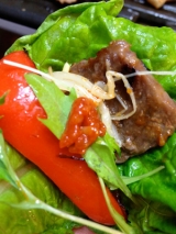 韓国の定番調味料とえいば、、、 コチュジャン ですが、 サムジャン を使ってみました 全然聞き慣れないサムジャンとやら、、、 サンチュ焼き肉味噌とある サムギョプサルにつけるアレなのね ということで、 お正月に実家に帰った時にみんなで サムギョプサル!! 今まで、おうちサムギョプの時は、 焼き肉タレでやってたけど、 サムジャンがあることで、 本格さが全然ちがうぜ♥ 豚 × ナムル × サムジャン 甘辛くておいしい! おうち焼き肉なので、 いろんな肉も巻いてみます 鶏 × ベビーリーフ × サムジャン 牛 × パプリカ × ナムル × 水菜 × サムジャン もりだくさん笑 あまり辛くないので、辛いのが苦手な母や妹も 気に入ってたくさん食べてました(o^ ^o) 野菜やサムギョプにつけて食べておいしいのは 当たり前!! ですこしアレンジ(?)してやってみたのが 卵がけごはん withサムジャン&韓国海苔(少し醤油) これ、おいしかったです(o^ ^o) サムジャン、なんでも使えそうなので、 私も常備調味料決定( ´艸`)♥ 今日はさらに炒め物にチャレンジ(o´∀`o) プルダック を作ってみようと思ってやってみました 簡単にプルダックのレシピは 1焼き肉のたれ 今回は塩だれを使いました 2砂糖 3しょうが 4唐辛子 5サムジャン を、お好みの分量で(←雑) 炒めると じゃじゃん! うんま! 甘辛さが絶妙←自分でほめすぎ爆 あ、みなさま、 また失敗すると思いましたか?笑 ケランパンがトンペイ焼きみたいになったり、 ミルクジャムがもろ味噌になったり、 オムライスが角刈りになったりする私ですが、 こういう 炒めもん 得意なのでございます笑 スンジャン サムジャン おすすめ! おいしいものが大好きなのに、、、 チャミペンなのに、、、、 食べ物書庫がなかった(@@ なんということorz ということで、 おいしいものを紹介する書庫も新しくできました(o´∀`o) よろしく♥ とか、かわいこぶっちゃって、 本当の姿↓ 続きを見る ['close']