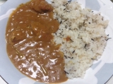 アマニ油をまた使ってみましたよ今回はカレーです 出来上がったカレーにたらっとかけていただきました ノンオイルで作ったカレーだったので、そのまま