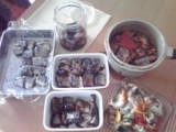 スーパーにお買い物に行くと、黒山のひとだかりむむむなんだろえぇっ!お魚詰め放題で500円ビニール袋 閉まらなくてもOKとまで看板に!これはよっし、久しぶりに詰めるぞーどうやっていれればいいんだろう?と迷いながら詰めていると「アナタ、頭しっぽと上下さかさまに入れていかなきゃだめよ」とミセスのアドバイスまぁ、でも充分じゃないかなーとさんま、あじをいっぱい入れてレジへどれくらい買ったんだろう?超特急でキッチンに向い、数えてみるとあじ2尾(かなり大き目)さんま19尾これで500円なんてっ!あ、税抜きです(笑)さぁてお料理開始 まずはあじをおろして、南蛮漬け新玉ねぎ半分(残りはトマト煮に使う)人参3センチピーマン 1個おしょうゆ すし酢 に漬けておきおろしたあじを、片栗粉とこしょうの入ったビニール袋にいれて揚げ焼き(フライパンは後で使うので洗わずに!)野菜につける さんまは甘露煮と塩焼きにして常備菜に頭、お腹をとり、筒切りにしたものを甘露煮おしょうゆ50㏄酒75㏄水100㏄刻んだしょうがさんま10尾圧力が掛かったら15分時間がたったら圧が抜けるまで放置アジを揚げ焼きしたフライパンに残りの9尾を入れ焼く今夜のおかず用に、さんまのイタリアン煮込み圧力鍋に入るだけ(笑)さんまをいれにんにくスライスひとかけトマト缶 半分新玉ねぎ くし形切り(残っていた半分)エリンギ 2個 適当に人参 残っていたものを適当に切る酢おおさじ2、オレガノを入れ圧が掛かって20分、時間になったら火をとめ放置圧力鍋に入りきらなかった塩焼きは冷凍保存これでしばらくは安心、常備菜もできたし血液サッラサラ家族を目指しますっ 【愛され続けて20年】浜乙女徳用ふりかけいわし モニター募集 続きを見る