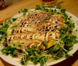 全北海道的には名物グルメというとジンギスカンというイメージが強いが、地域それぞれにも何がしかを起源とした名物がある 例えば十勝方面でのその一つが豚丼で、相当美味しいとも聞いている 北海道在住の自分、帯広には仕事で立ち寄ることはあるのだが、食事となるとラーメン探訪などに時間を費やし、かねがね食べたいと思いつつもなぜか豚丼に縁がない というところに、向こうからやってきてくれたのが株式会社アクセルクリエイションさんの「とれたて!美味いもの市」から、お試しセット:十勝名物豚丼である タレ付きの肉と、小袋はご飯用のタレであるセットはこれが8食となっている8人家族でもケンカにならない(当たり前だ) 一人前、ローススライスは3枚から4枚十分な食べ応えと思われる 豚丼というと世間では、豚の小間切れ肉を玉ねぎ等と共に炒め煮にしたようなものをご飯に盛ったものを指す場合が多いが、十勝のそれはベロンと大きなスライス肉を焼いて、そのままベロンとご飯にのせるスタイルが一般的 とにもかくにも試食会 豚丼のスタンダードなスタイルと思われる自分は肉をフライパンで焼くとき一緒にいためたスライス玉ねぎを飯の上に敷き、その上に肉を盛る こうして食感を優しくし味わいをふくらませるのだ 肉が柔らかいと大評判切り身の具合も程よく、食べやすい味も甘からず辛からずの、案外あっさりしたものだったが、これが食欲を邪魔しないのでどんどん箸が進む なるほど〜の十勝のグルメ、堪能させていただいた 肉も旨かったが、この商品で自分が着目したのは「ご飯のタレ」 これをお肉とは別にご飯にかけ回して食べるというものだそれが十勝流なのかどうななのかは分からぬが、タレ付きの肉にタレご飯?ちょっと甘くどいんじゃないか?という懸念もあったのだが、コレがなかなかイケるご飯にも薄味をつけることで、肉に濃い味が要らなくなるという寸法か で、そのタレを使って焼き飯を拵えてみることに たっぷり目な玉ねぎとともに炒めたご飯をタレで味付け(味を締めるよう塩コショーを適宜こういう時は何となくニンニクを使いたくなるが、ここでは要らないと思う) ご飯の上に千切りした春キャベツを軽く敷いて肉を乗せた肉は焼いてからハサミで食べやすい大きさに 長ネギみじん切りを添えてひとクセ足した酒を呑んでいるときには紅生姜よりこれが良い 旨い〜料理のテクよりも、商品元来のクオリティとポテンシャルが高いおかげで、簡単に美味しい豚焼飯の出来上がりである というわけで、めでたく家でご当地グルメを楽しんだという次第 良い時代である とれたて!美味いもの市ファンサイト参加中 続きを見る