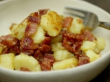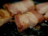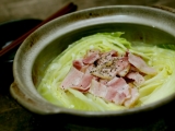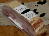 愛媛県産の豚肉を昆布だしを使った調味液にじっくり11日間漬け込み、 自然に味を染み込ませています また、お肉の仕入れからお届けまで、冷凍を一切かけていないので 肉へのストレスが少なく、豚肉本来の旨味を味わうことが出来ます ギュッと濃縮された旨味とトロッととろける脂の甘み 噛みしめるたびに口いっぱいに幸せが広がります 本当に美味しいベーコンが食べたい! という方ぜひ試してみませんか? そんな話を聞けば 元来、燻煙したものが好きな自分であるからして、喉から手が出ること必至 そんな願いが通じ、此度試食の機会を得たのがコレ有名な日本食研(激辛ファンサイトファンサイト参加中)さんが展開する通販事業「プロージット」の品だこれ400グラム、ズシッと幸せな手ごたえ 素直に味わうならステーキが一番ワインも冷え頃、さっそく焼いてみる どれだけ美味しいかは、見た目でご想像あれ皿に盛るのさえもどかしく、お行儀よろしく、フライパンでジリジリ焼けてるこれに、直接フォークを刺したほど その旨さ、具体的に聞かせろと言うなら、冒頭のセールストークをご参照あれ ちょっと違うとすれば、脂身の食感はトロリというか、よい具合にモチモチもしていて飽きのこない味わいだ こんな旨いベーコンであれば、その味が引き立つようなシンプルな料理にも良いだろうと思い、後日はこんなものを 春キャベツはくし切り、ベーコンはスライスしてさあ、日本酒も冷え頃になったので酒蒸しにしてみた 味付けは少量の粗塩と粗挽きコショーだけ 何しろベーコンのもちっとした存在感が良く、キャベツを引き立てる 素材が良いと料理がラクだ(笑) またまた後日久しぶりに暖かだったせいで、まずビール!という夕刻 ビールにはコレでしょとばかりに、どうしても作ってみたかったせっかくの良いベーコンの用途としてはどうなんだろうと思いながらも、出来上がったのがコレ お馴染み、ジャーマンポテト ベーコンはそこらへんに売っている品であれば、カリカリにしようとすると自らの脂(油)で身はみるみる焦げて燃えかすのようになるが、プロージットのそれは締まった身によほどの脂が蓄積されていると思われ、瑞々しさが絶えない大体にして、カリカリにするということが容易でないのだ良い豚なのだろうと推察できる イモは蒸しから炒めに至る部分を丁寧にこなし、バターを溶かし込んだりもしてけっこう旨い炒め上がったベーコンの余分な油を除き、イモと混ぜ合わせて出来上がり 焦げてもなおもちもちとした食感のあるベーコンで作ったジャーマンポテトは、しみじみと旨いのであるおかげでビールも美味しい楽しい食卓となったのであった ちなみにプロージットとは、ドイツ語で乾杯の意味だとか 飲兵衛のアタシにゃ何とも良い響きである 続きを見る