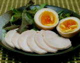 先日仕込んだ鶏胸の、その後である 肉に味噌を塗ったのだから味噌漬けには違いないで、初めてやってみた味噌鶏ハム これまた先日の味付け玉子を添えて親子共演 鶏ハムは好物なのでしばしば拵えるが、いつもは砂糖、塩を擂り込む、多分誰でも同じやり方と思うが、味噌というのは初めてだ で、お味は 勿論、みそ味というか味噌の風味がなかなか良いちょっと塩抜きが過ぎてしまったか、味が薄めになってしまったなのでマヨネーズを少しつけて食べると、これがまたまた旨い味噌とマヨネーズの相性の良さは知られたものだ 結果、テレビのレポーター風に言えば、大成功〜!というところか 味噌を塗るだけなので、塩を擂り込む従来の鶏ハムより作り方がシンプルだそれでもしっかりと塩分は浸透し、食感も変わらない これは良い知恵を得た当面、我が家の鶏ハムはみそ味だな 終 ↓モニプラ応募中 華味鳥の新商品【炙り】セットを10名様に! 続きを見る