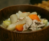 自宅ではこの冬初の豚汁か その前は、深夜食堂のマスターが作るものをDVDで検証し多分同じようなものを拵えたが、こうした汁物はどうしても自分流みたいなものが出てしまう TV深夜食堂の、あの不思議なテーマソングを口ずさみながら(近頃クセになっている)出来上がったのがコレ 写真を撮るつもりだったので、おつゆ少なめだが、自分の場合、どうしても具が多い 鍋に器に、ぎっしりとした感じが好きなのだ かつ味濃い目酒たっぷり味噌たっぷりで香りを立てて、仕上げには生姜も入れるお裾分けした先からは「大人味」との評価 ところで、いつも悩むのがイモを入れるかどうか 拵えたその日のうちに食べてしまうなら良いが、たっぷり作って数日かけて食べるなら、イモはヘタすると雑味のもとになってしまうこともあるから、入れたくない かといって、その都度、別茹でのものをあわせても、何となく違和感 なので、添え物にしてみた 豚汁におかずが付くというのは面白いのではと、男爵のキンピラバター醤油味を なんと画期的! とも思ったが、これはこれで美味しいものの、結局は酒の肴なのだった(笑) 終 男性限定!鳥取産あご入り鰹ふりだし使用で“男の料理レシピ”10名様大募集! ←参加中 続きを見る