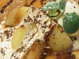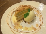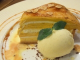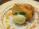 京都御所に行った帰り、歩き疲れたのかどうしても甘いものが食べたくなって友人二人で『シャンデレール』に行ってきました『シャンデレール』は遅い時間まで開いているので、夜に美味しいスイーツを食べたくなった時に便利なありがたいお店ですポワール 850円ラフランスのコンポートとマスカルポーネのアイスクリームを上にのせて、甘酸っぱいベリーのソースとチョコチップのシャンティー添えたクレープです友人が頼んだのですが味見あっせてもらうと、マスカルポーネのアイスクリームはバニラアイスよりややさっぱりしていていましたラフランスのコンポートにフレッシュ感があって洋梨特有の上品な香りが残っていて美味しい缶詰の洋梨とは全くの別物ですチョコチップのシャンティーのカリカリした感じや強めの甘みと良く合いますかぼちゃの焼きミルクレープタルト 850円かぼちゃクリームが何層にも重なった人気のクレープですバニラアイスもたっぷり添えられていてボリュームたっぷりです一番上はカリカリにキャラメリゼされていてクレームブリュレのようになっていました下のしっとり濃厚なカボチャクリームとの食感のアクセントになって美味しいシャンデレールブルー 420円 厳選した中国茶とセイロン茶のブレンドに、ラベンダー、イチゴ、ルバーブの甘い香りをプラスしたフレーバーティー友人と私も一緒の紅茶を注文したのですが、甘い香りが疲れた体にちょうど良かったですドリンクも頼んでクレープセットにして、890円+季節限定クレープを頼んでので+100円で990円ちょっと高い気もするけど、美味しいのでやはり満足ですhttp//moniplajp/bl_rd/iid56757679050b6cd4f8475d/m4eb4f60804d91/k2/s0/ 続きを見る ['close']