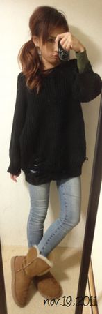( ´ω)o_∠オハヨウ!昨日のカッコ ジャケット/ミッシュマッシュカットソー/AZUL by moussyデニム/ノーブランドムートンブーツ