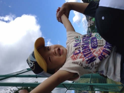 お父さんと外で遊ぶ時が1番にっこり 肩車してもらって、空に近づいたよ!