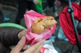 前回の続きです ハニハンが終わった後は昼食です 私の胃腸の調子が悪く、レストランでの昼食は断念したのだけど 薬を飲んでたので、かなり回復 ネットの口コミで 「キャプテンフックスギャレー」 というお店の パイナップルとベーコンのピザが美味しいらしいと言うので行ってみることに お昼時で混雑してるけど、レジが沢山あるのでさほど待たずに買えました もちろん、席は空いてないのでその辺に座って食す こういう時にもベビーカーは助かりました ピザは1枚(1切れ)410円だったかな? 胃腸の悪い私には丁度良いサイズ 娘も1枚ペロっとたいらげ・・・ 2歳児と同じ食事量の私って大丈夫か?笑 旦那には少な過ぎだけど、後で他の物を買い食いして貰えばいいと ここでは我慢してもらいました 味の方は、まぁ普通かな ピザハットとか、そんな感じ 絶賛する程でもなかったです 午後の第一弾に選んだアトラクションは 「カリブの海賊」 過去45回、TDLに来た事あるけど 来たら必ず乗る私の好きなアトラクション でも、幼児にはちょっと不向きでしたね 暗いし、怖いシーンもあるし 娘はずーーっと下を向いて座っていました まぁ、泣かないだけ良かったかな 待ち時間は35分位でした スモールワールドとハニハンが待ち時間無く乗れたせいか? 胃腸不良でスタミナ切れなのか? 35分が凄く長く感じられました そう言えば、張りきってデジイチ持って行った割には ろくな写真がありません いつも私が撮る人なので、私と娘のツーショットがありません (旦那は写真を撮るのがめっちゃ下手) 見知らぬ他人にお願いして家族写真を撮ろうにも そういう事、私も旦那も積極的に頼めるタイプでは無いので・・・ でも、こういう時は遠慮せずにお願いした方がいいです! シンデレラ城をバックに家族写真が撮れなかった事にプチ後悔 取りあえず 「スモールワールド」 「ジャングルクルーズ」 「ハニハン」 「カリブの海賊」 と お目当てだったアトラクションは制覇したので 後はのんびりトゥーンタウン内をブラブラしたり、パレード見たり トゥーンタウンは幼児向けと言うことで、小さい子連れがわんさか アトラクションも待ち時間が少ないので助かります とは言え、「ミニーの家」 では30分位待ったかな (ミニーの家にて) 娘はここが一番楽しかったみたい♪ トゥーンパークとやらも子供がわんさかでした この辺で15時頃だったでしょうか 大体、遊び尽した感があったので そんなに遅くまで滞在する必要もないかと思ったけど そう言えば、まだ、やり残した事が・・・ TDLで一番人気のおやつ 「テリヤキチキンレッグ」 と クリスマス限定のキャラメルチョコレートサンドクッキーを食べていないっっ (胃腸悪いクセして食べる事ばっか笑) テリヤキチキンレッグは30分位並んでようやくゲット アトラクション並だわ (2本で860円) 初めて食べたけど、骨離れが良く柔らかくて美味しかった 人気なのが分かります キャラメルチョコレートサンドクッキーは何処に売ってるのか なかなか分からなくて・・・ 午前中から気にして探してたんだけど キャストに聞いたら、シンデレラ城の中庭にあるワゴンでしか売ってないと (1枚350円) 思ったよりも大きくて小腹が空いた時に食べるといいかも 可愛いし美味しいし、もっと買いたかったけど 密封された包装じゃないので、残念ながらお土産にはなりません そう言えば、ここでちょっとしたハプニングがありまして 中庭で座って食べていたら、鴨がやってきて まだ4分の1位しか食べていない私のクッキーを奪ったのです まさかブン太(うちの犬)じゃあるまいし 鴨が本気でクッキーを奪うとは思わず、私も油断してました 350円もしたのにショックで、また買いに行こうとしたら もう店仕舞い(早っ!!) 近くに居た係員?にダメもとで話したら 快くクッキー1枚を(無料で)くれました そんなこんなで、やり残した事を全て終え 旦那と娘にはパレードでも見ててもらって その間に私は一人でお土産店を物色 人が沢山でじっくり見て回れなかったけど ミッキーとミニーのクリスマスファンタジーのぬいぐるみを購入 一体4300円で、最初はミニーだけにするつもりだったけど あまり大きくないぬいぐるみなので、せっかくだからミッキーも買うことに 2つ揃ってた方が見栄えもいいしね 足に 「2014」 と書いてあり 行った年が付いてるのって記念になっていいですよね 個人的には、ドナルドダックかプーさんが好きなんだけど 年号が付いてるのは、ミッキーとミニーしか見当りませんでした なんだかんだで、TDLを出たのは17時頃 お土産店を見始めたら楽しくなってきて もっとゆっくりしたかったけど 次の日は旦那が仕事だし、あまり遅くなるのもどうかと思ったので・・・ 帰宅してお土産のぬいぐるみを渡したらご満悦 買ってあげた甲斐がありました ************************************** 【感想まとめ】 TDLになんて興味が無かった私だけど 子供と一緒に行くと本当に楽しかったです 正直、娘にはまだ少し早かっ