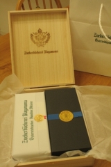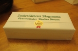 早いもので、本日で 結婚10周年 を迎えました結婚したての頃は、10周年なんてまだまだ遠い先の事だと思っていたのに なんか凄く あっと言う間 でしたね ひところ昔だと 「スイート10ダイヤモンド」 とか言われてたけど 今の私にはダイヤモンドなぞ全く興味有りませーん笑 10周年だからと何か特別な事は考えていなかったけど 私が以前から食べたがっていた 「ツッカベッカライ カヌヤマ」 のクッキーを 旦那がサプライズで買って来てくれました これ、どなたかのブログで拝見してから気になってて ずっと食べてみたかったクッキー かなり美味しいらしくて、食べた人のブログなんかを見ても 「期待ほどでもなっかた」 とか 「イマイチ」 的な評価を見かけません 殆どの方が絶賛するクッキーです しかも、結構いいお値段のクッキーなんですよね おやつに自分用として買うには敷居が高過ぎます おまけに、このお店は日曜祝日はやってないし 立地柄、田舎者の私はなかなか行く機会がありません なので、旦那がこのお店の紙袋を下げて帰って来た時は 「ヒャッホー」 でした笑 クッキーの詰め合わせの 「テーベッカライ」 と 「ブルクテアター」(焼き菓子) のセット ゴージャスに木箱に入ってます 実は買って来たのは記念日の2日前だったので 当日まで食べずに我慢しようと思っていたけど 私が 「クッキー」 と言う言葉を発したら 娘が反応してしまい 「食べる、食べる!」 と騒ぎ出したので フライングして頂くことに・・・ 勿論、お目当てのクッキーの方から頂きました (↓早く開けろ!と騒ぐ娘の頭が写ってます笑) シンプルな缶ですね 私、こういった入れ物って捨てちゃう派だけど これは捨てずに記念に取っておこう笑 ワーォ 待ち望んでいた 「テーベッカライ」 他の方のブログで拝見した通り、取り出し難いくらいに きっちりとクッキーが詰められています お味の方は 噂通りに美味しかったです 一言で言うと凄く “お上品な味” ふんだんにバターを使ってるはずなのに 脂っこくなく後味がアッサリしていて 幾つでもパクパクいっちゃいそう 特にチョコクッキーの生地の肌理の細かさが凄いですね 口の中に入れるとホロっと溶ける様な・・・(例えですけど) 甘さも丁度良いし、確かに今まで食べたクッキーの中で一番美味しい これ、手土産とかで貰ったらかなり嬉しい代物です 大事に大事に食べようと思っていたのに 娘もパクパク食べるので、あっと言う間に無くなってしまいました 2歳児には贅沢過ぎるクッキーだわ こんな高価なクッキーの味を覚えてしまったらヤバい、ヤバい・・・ もう一つの包みの 「ブルクテアター」 はまだ食べていません きっとこれも美味しいに違いない!? 食べるのが楽しみ 結婚10周年の記事にするつもりが、グルメレポになってしまいました 私の母からはお祝い金を貰ったので、それでディズニーランドでも行こうかな 「娘を預かるから、2人で美味しい物でも食べに行って来れば!」 とか言われたけど、そこまでして外食に興味が無くなったと言うか 食べることにお金を使うのは勿体ないと思うようになりました 昔はあんなに食べ歩きが好きで、しょっちゅう外食とかしてたのに・・・ それに、大変だけど食事は娘も一緒の方が楽しい 居なければ居ないで寂しいんですよね 応援のポチ お願いします♪ 【アンデルセン】マッチ売りの少女の夢(クッキー缶)10名様募集! 続きを見る