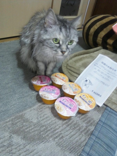 今日ねこ姫が届き早速食べさせて見るとバクバクと美味しそうに食べていたので、うちのねこの好きなホタテいりなんで、固さもほどよい感じでピコにはあった食べ物でした