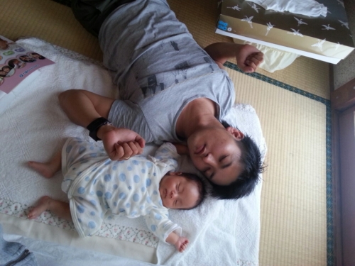 6月に産まれ、千葉に里帰りしていた私 パパは仕事のため、出産時はいてくれたものの、退院後は大好きな息子と会えず 私がパパのもとに帰るとき、久しぶりの対面 初めてパパと息子が昼寝した、ほっこりした思い出です