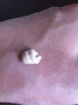 気になるカバー効果ですが、シミは一度では消えませんでしたが、上から2度ほど軽く叩くようにつけると、目立たなくなりました