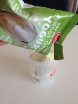 EasiYo(イージーヨー)の手作りヨーグルトをお試しさせて頂きましたどーんとお届けこちらのヨーグルトメーカーとヨーグルトの素が入っていました今回お試ししたのは、スイートグリークという素でもギリシャヨーグルトの加糖ですまずはこちらのヨーグルトの特徴を1) すべてのイージーヨーは、生きたまま腸まで届く「プロバイオティクス」2) 他に追従を許さない乳酸菌量が自慢3) ホームメイドのため、乳酸菌が最高レベル4) 100%ナチュラルで、添加物は一切使用していない(赤ちゃんの「離乳食」としても安全なヨーグルト)5) すべてのイージーヨーは、加糖でも低GI食品6) 美と健康のための食品、まさに「美食」というわけでとても楽しみに作ってみましたまずは500mlくらいに水を入れるそこへ素を投入蓋をしてシェイク上の線までまた水を入れてもう一度シェイクそしてメーカーの中に熱湯を入れて先ほどシェイクしたのを入れて蓋をしめる暖かいところにおいてみました冬場は1014時間くらいということで、短くすると甘くなるそうで10時間程放置完成ー!この写真もう味見したあとですみません(笑)まずは普通にそのまま次はブルーベリーソースをかけていただいてみました濃厚ですごく美味しかったですいつも食べるのよりリッチな味わいでした一度に1000gもできるのですごい量!2週間賞味期限があるそうですヨーグルトないけど買い物にいけないーって時に水だけあればできるのでとてもいいですねもう少し一袋の金額が下がるともっと嬉しいなぁなんて道端ジェシカさんもお気に入りだそうです詳しくはサイトをご覧くださいヒロネットショップ ファンサイトファンサイト参加中にほんブログ村いつもご訪問ありがとうございます遊びにきていただいたらポチッとしていただけると嬉しいです 続きを見る